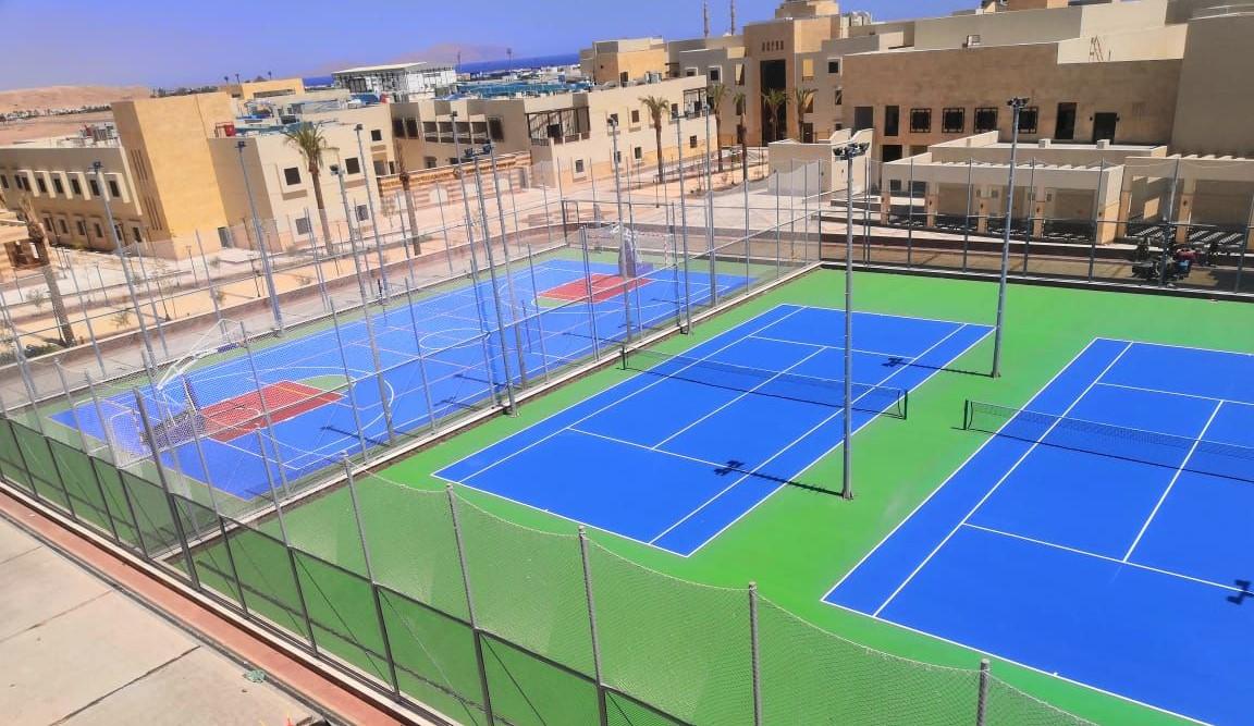 إنشاء ملاعب التنس بمختلف أنواعها (صلبة، عشبية، ترابية) وبمواصفات قياسية